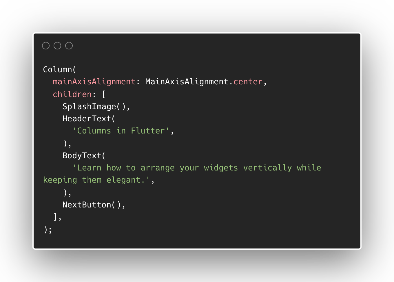We just covered a short introduction to using columns in Flutter. It is important to keep the usage of columns to arrange cohesive widgets vertically. Finally, keep your content adaptable to size constraints by wrapping child widgets with Flexible or Expanded.