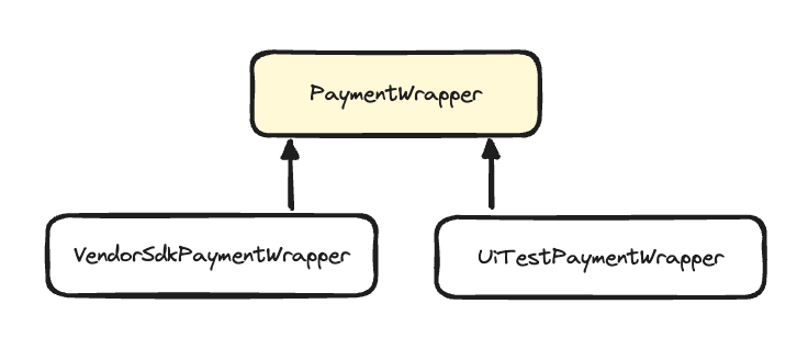 The implementation of UiTestPaymentWrapper does not depend on the VendorSdk, so we are sure that this will run on UI tests. In this example, calling the pay() method always returns a successful result. To change this result, you can introduce a setter() function and change the return value according to different test cases.