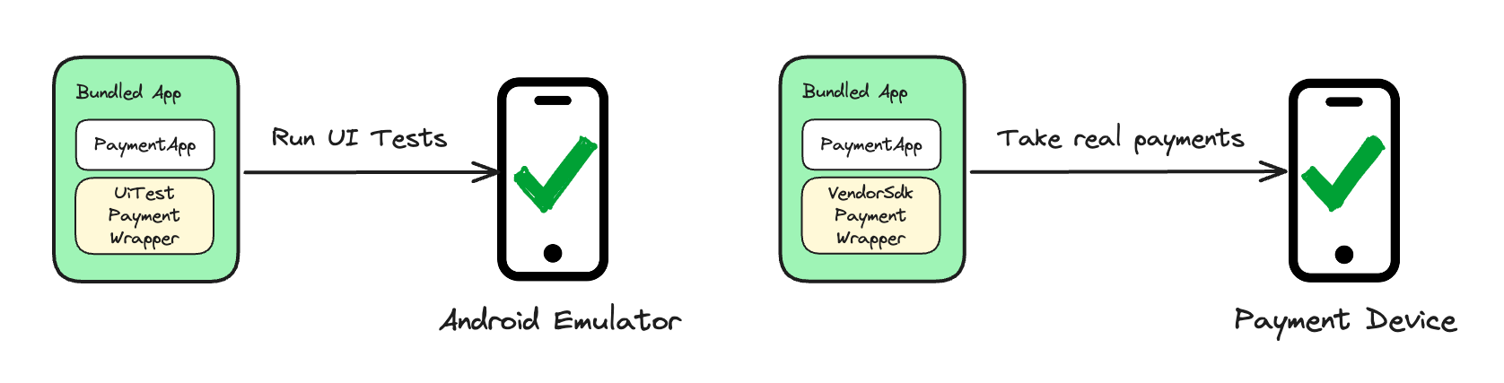 If we want to run automation tests on an emulated device when a particular SDK only works on real devices, then using the third-party library directly will not work. In our payment app, these automation tests would fail as emulators do not have the necessary hardware for payment.